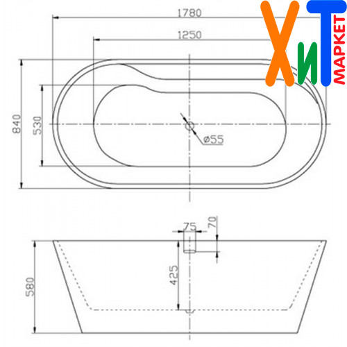Ванна - 1 шт. Дополнительно: каркас, слив-перелив, панели