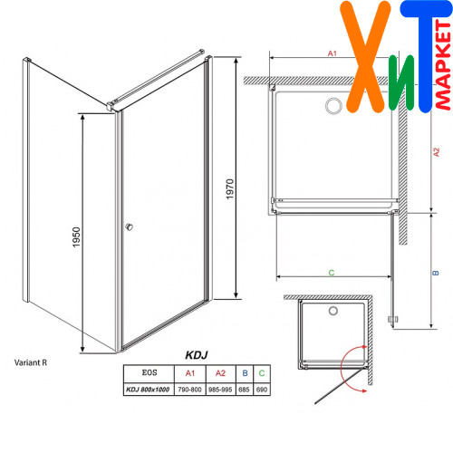 Душевой уголок Radaway EOS KDJ 90 прозрачное стекло R