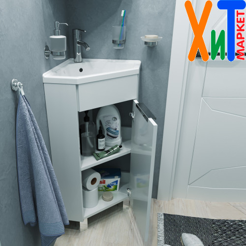 Тумба с раковиной Penta 37х37Н 1д. Белая угловая