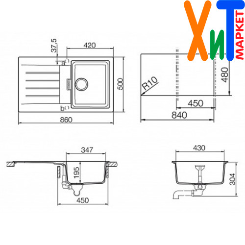 Комплект Мойка - 1 шт. Корзинчатый вентиль - 1 шт. Сифон - 1 шт. Сливная арматура с клапаном автоматом - 1 шт.