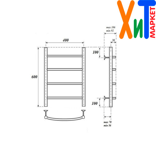 Полотенцесушитель водяной Point PN04146 П4 400x600, хром